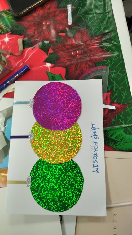 13 grudnia odwiedziła nas grupa harcerzy z 1HDK „Zielony Płomień” oraz uczniów klasy 8a Szkoły Podstawowej im. Janiny Sieklickiej w Czernicach Borowych wraz z p. Joanną Szafrańską. Wykazując się niezwykłą pomysłowością, uczestnicy wykonali kartki bożonarodzeniowe. Ręcznie wykonanych kartek nie da się porównać z gotowymi, kupionymi w sklepach. Nie brakowało ani wyobraźni, kreatywności, ani inwencji twórczej. Gotowe prace można podziwiać na poniższych zdjęciach. Trzeba przyznać, że cieszą oko i zapewne sprawią niemałą przyjemność tym, do których trafią.
