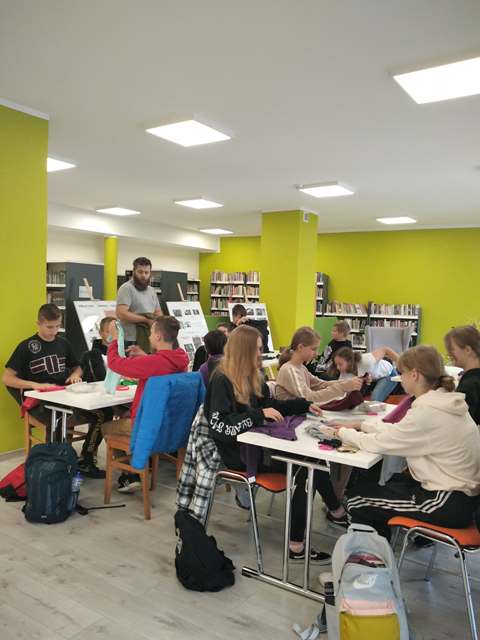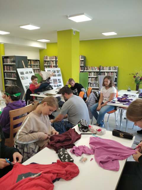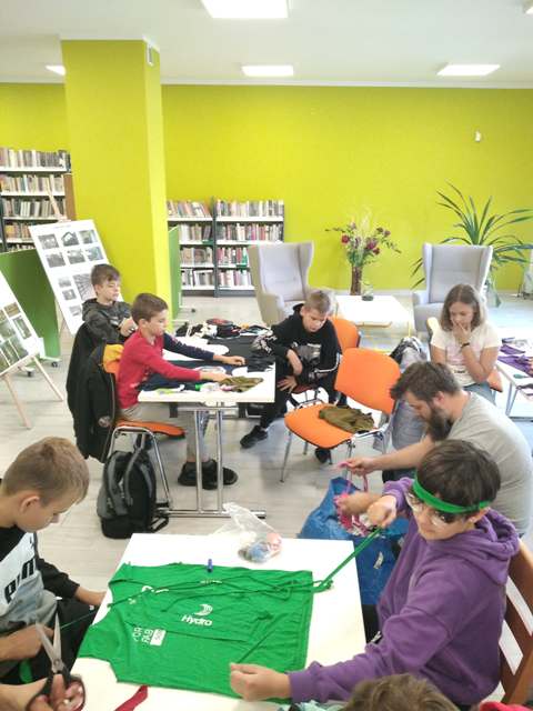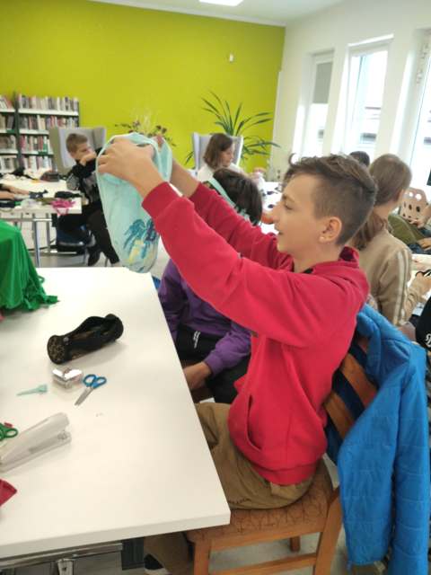 21 września 2022 roku w naszej Bibliotece odbyły się warsztaty pn.: „Woreczki do zadań specjalnych” zrealizowane w ramach zadania „Do dorosłych i dzieci! – Nie marnujemy żywności, ograniczamy śmieci”. W zajęciach wzięli udział uczniowie 7 klasy Szkoły Podstawowej im. Janiny Sieklickiej w Czernicach Borowych. Zajęcia miały charakter praktyczny. Uczestnicy pod przewodnictwem wykwalifikowanego prowadzącego wykonali ze starego T-shirtu własny, spersonalizowany worek wielokrotnego użytku, który zastąpi zaśmiecającą „foliówkę”. Warsztaty pozwoliły nie tylko rozwinąć zdolności manualne i kreatywność uczestników, ale również pogłębić wiedzę o tym, jak w codziennym życiu można w prosty sposób ograniczyć produkcję śmieci, używając chociażby wielorazowych toreb.
