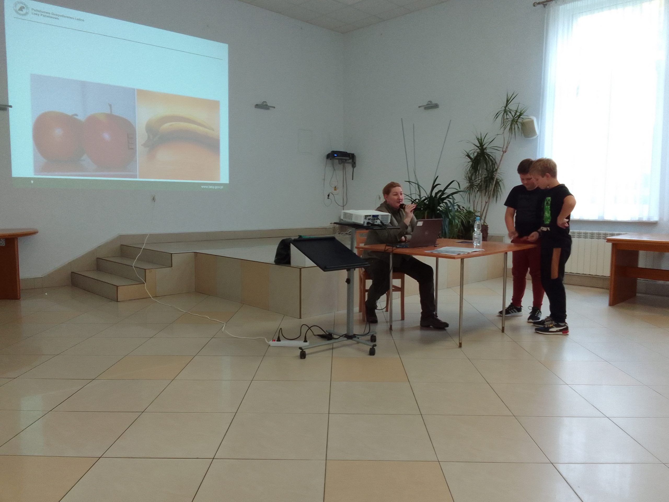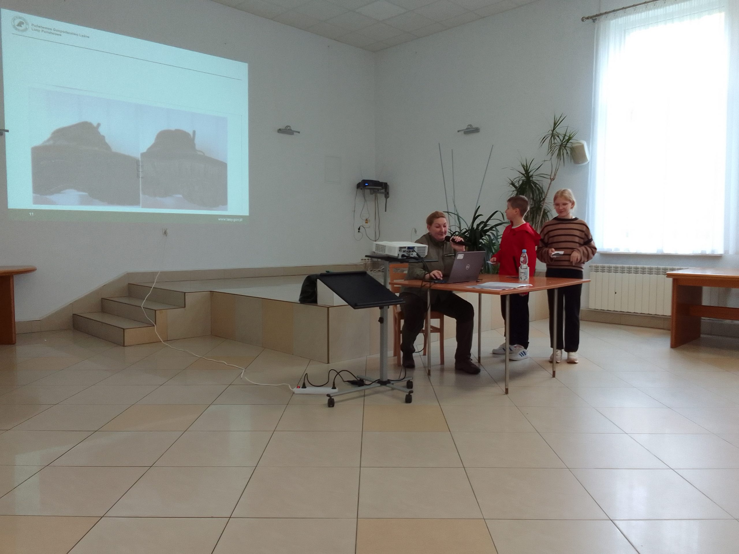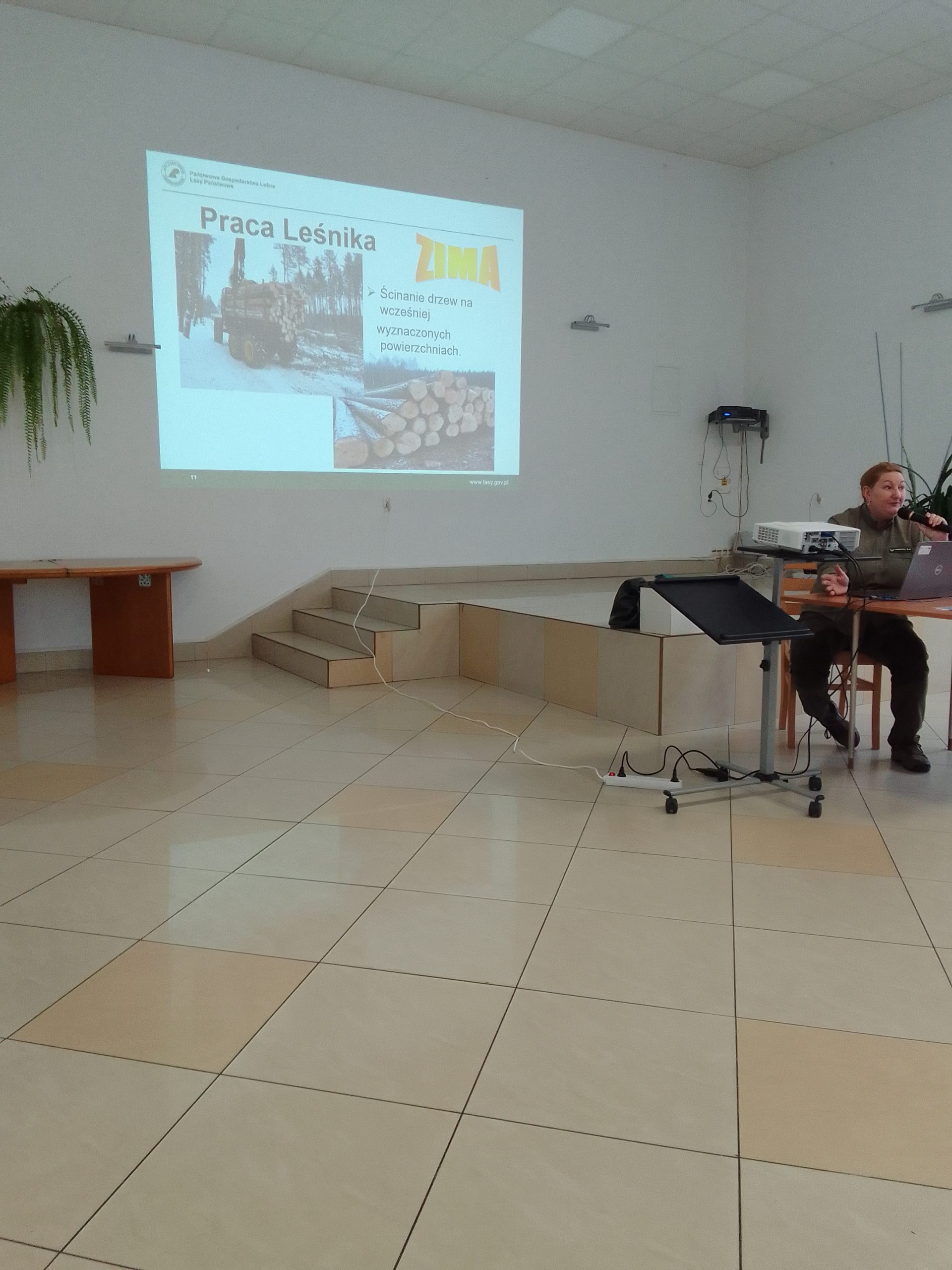 Prowadząca, na podstawie prezentacji multimedialnej zapoznała obecnych z zasadami ochrony przyrody oraz jak dbać o środowisko przyrodnicze, a także o bezpiecznym odpoczynku w lesie i zasadach przeciwpożarowych, jakie tam obowiązują. Uczestnicy dowiedzieli się również o tym, jak można pomóc zwierzętom leśnym przetrwać zimę oraz w jaki sposób należy zachowywać się podczas dokarmiania zwierząt w lesie.