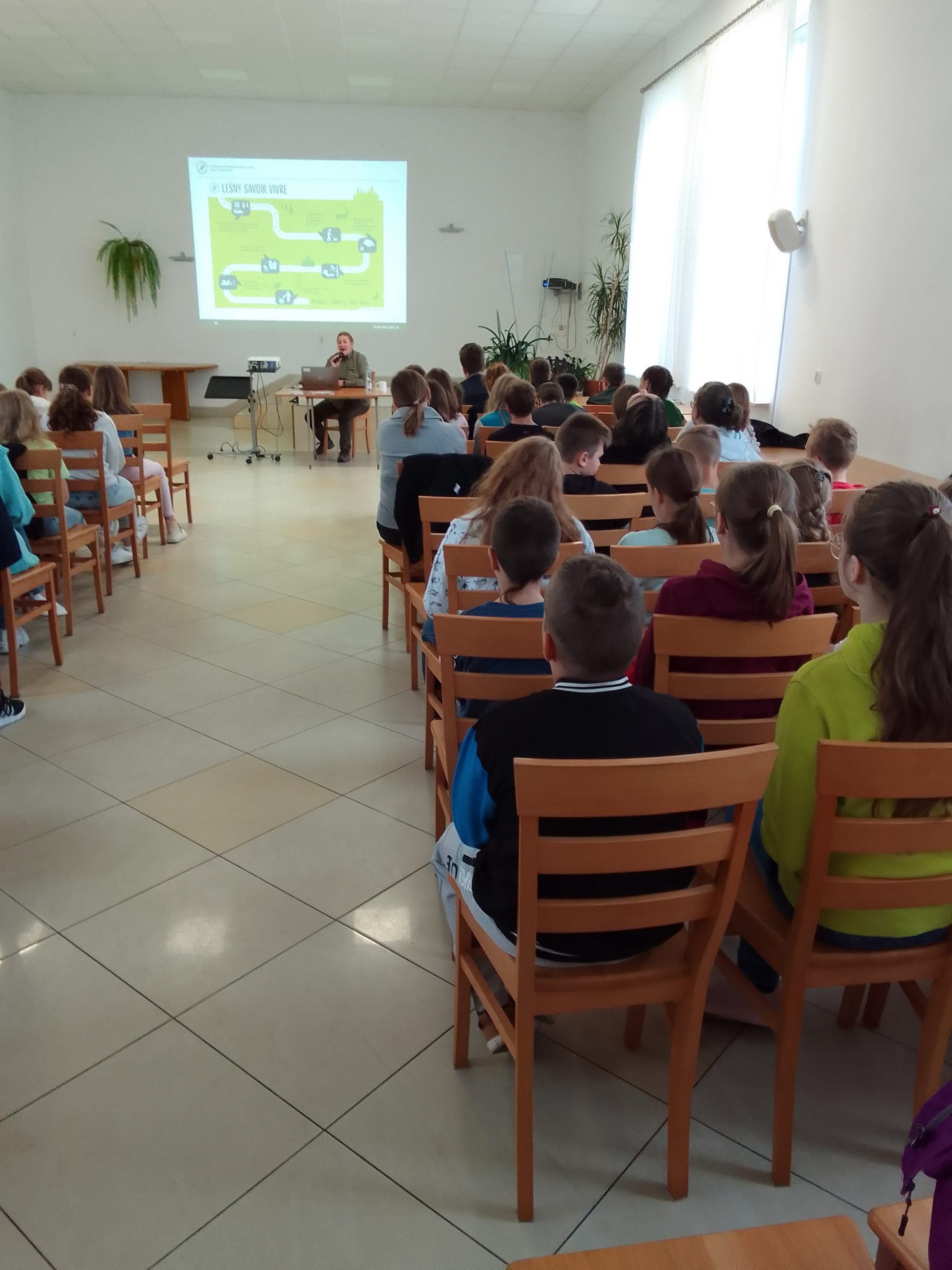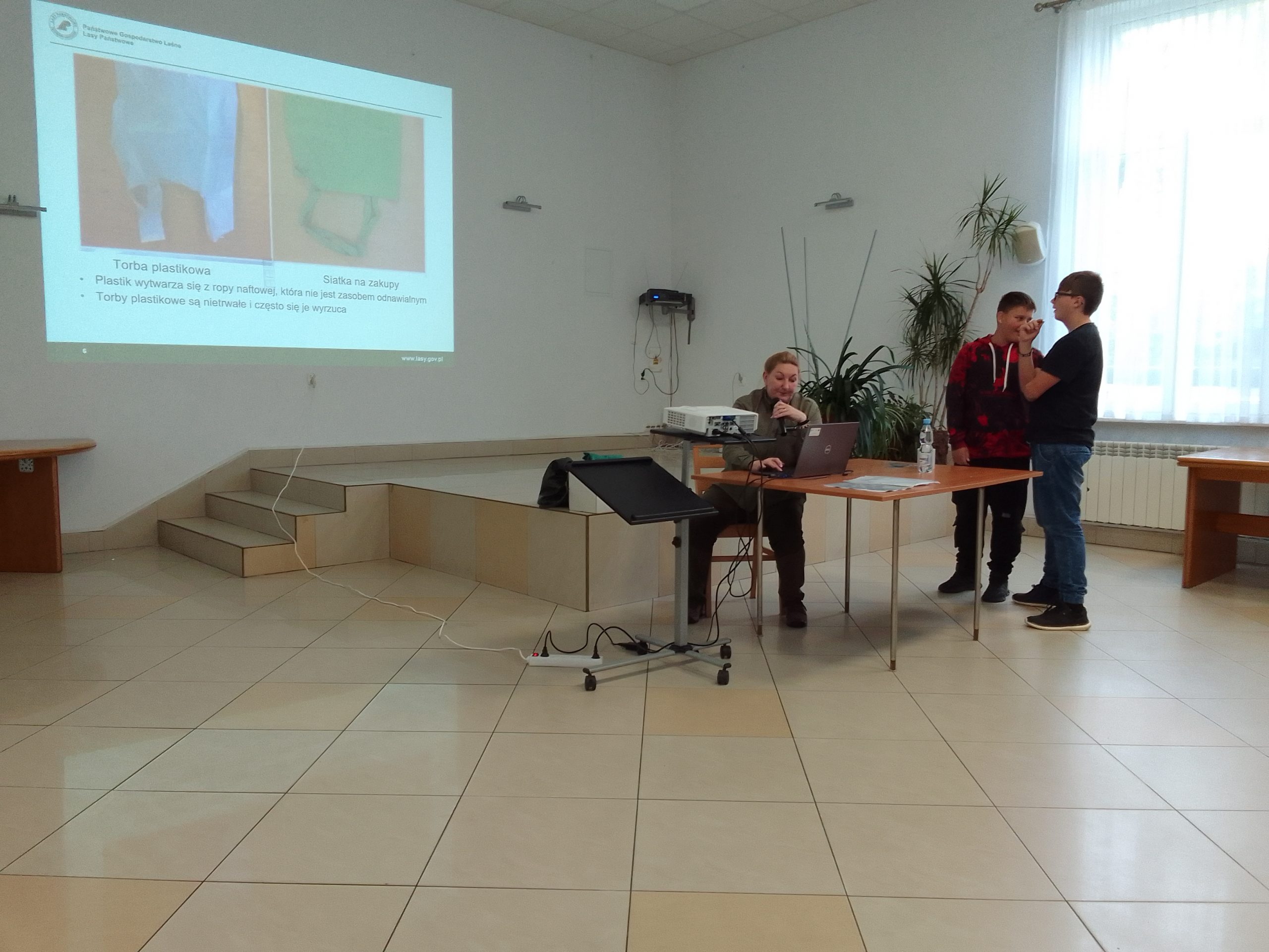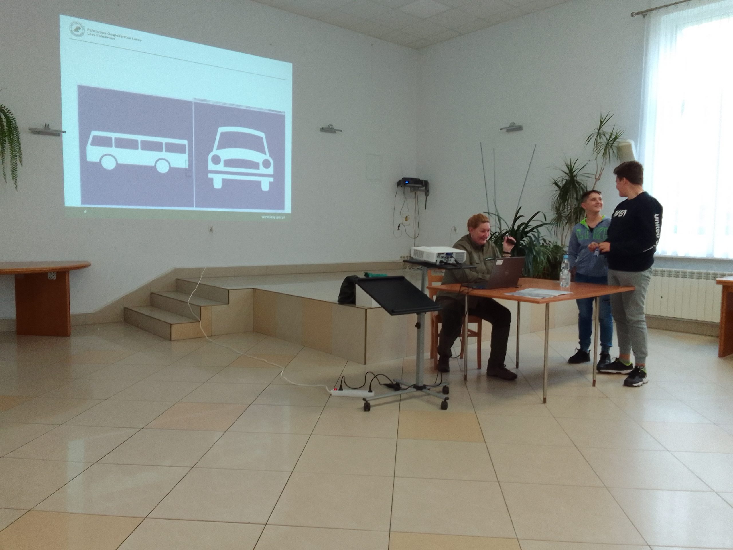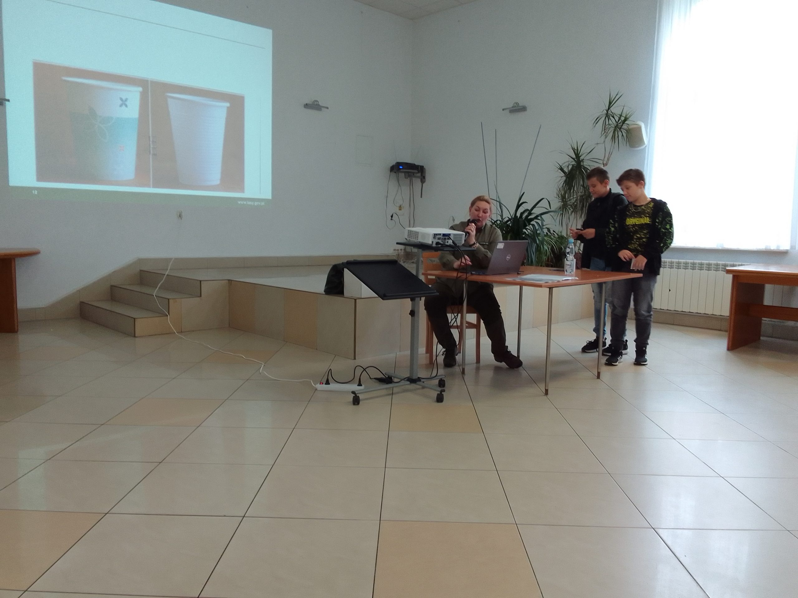 Prowadząca, na podstawie prezentacji multimedialnej zapoznała obecnych z zasadami ochrony przyrody oraz jak dbać o środowisko przyrodnicze, a także o bezpiecznym odpoczynku w lesie i zasadach przeciwpożarowych, jakie tam obowiązują. Uczestnicy dowiedzieli się również o tym, jak można pomóc zwierzętom leśnym przetrwać zimę oraz w jaki sposób należy zachowywać się podczas dokarmiania zwierząt w lesie.