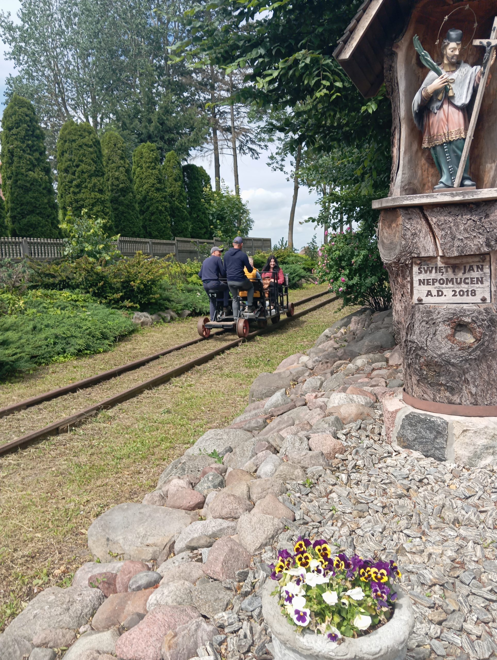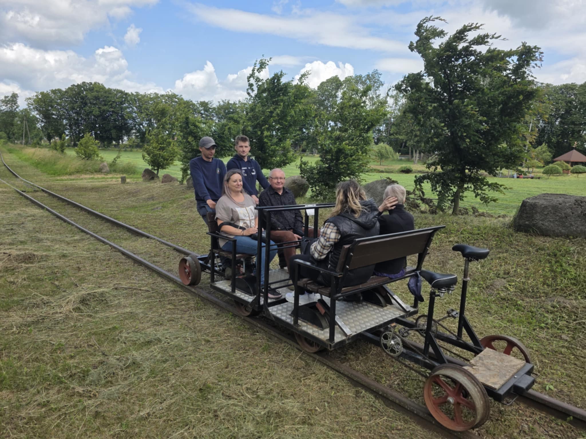 Nie zabrakło również wspólnego posiłku oraz jazdy drezynami, co dostarczyło wielu emocji i radości. Śmiech i entuzjazm towarzyszyły wszystkim, a wspólna jazda drezyną stała się doskonałą okazją do integracji oraz wspólnej zabawy. Osoby, które pierwszy raz odwiedziły nasze okolice, miały okazję obejrzeć kościół parafialny, teren parafialny z pięknie zadbanym stawem, odpocząć w altanie oraz pospacerować na skwerku.