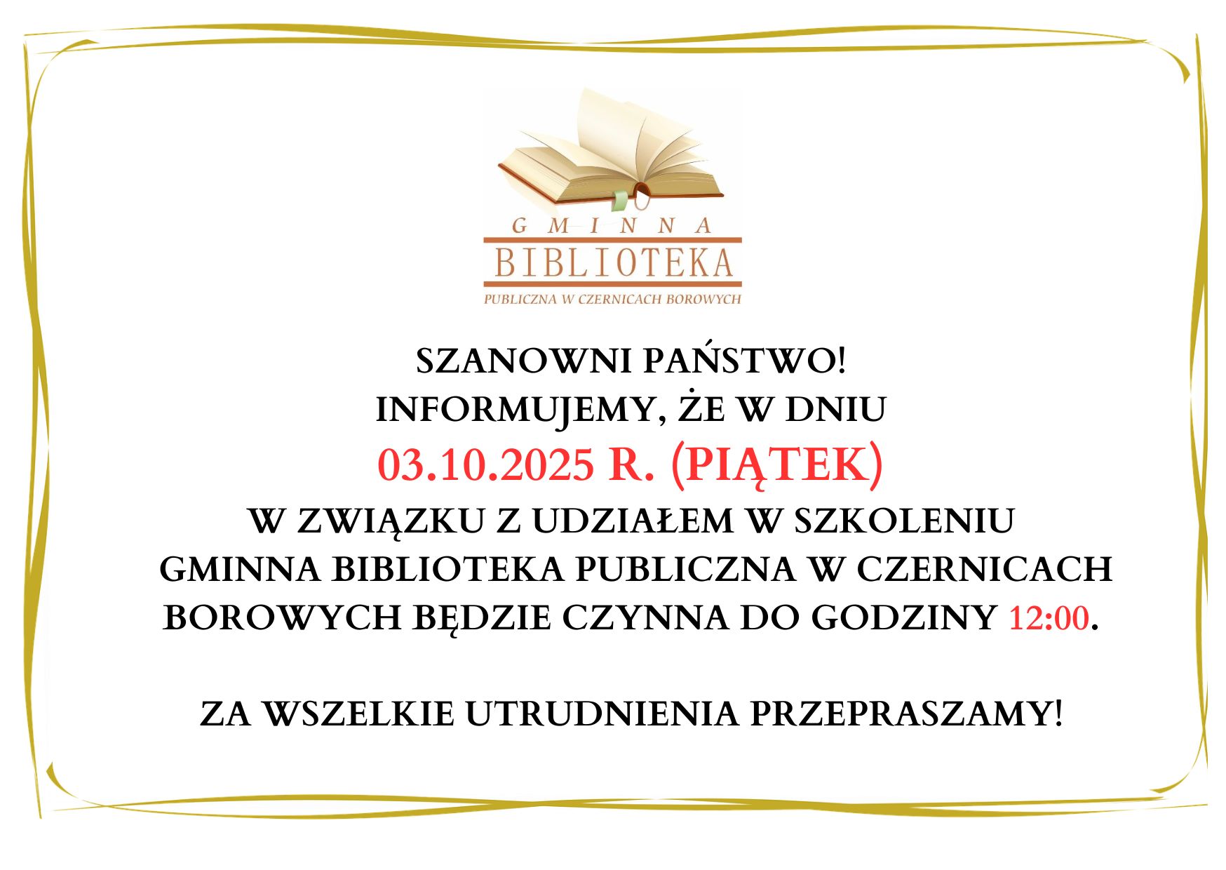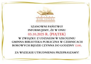 Miejsce: Gminna Biblioteka Publiczna w Czernicach Borowych, ul. St. Chełchowskiego 12, Czernice Borowe